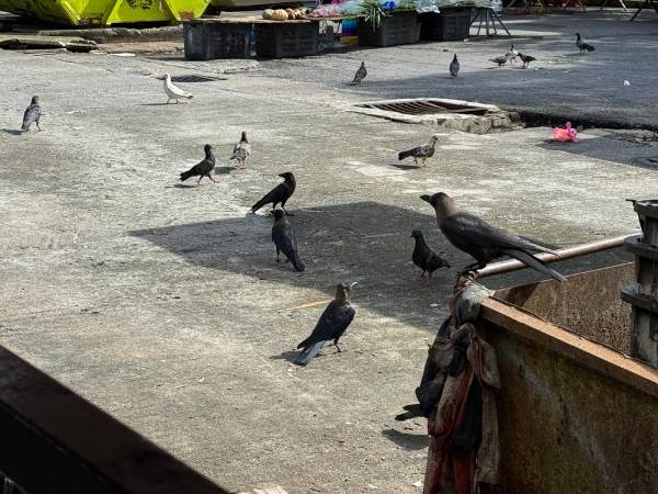 他说,乌鸦的粪便尿液也会腐蚀风扇和灯管的结构,因此巴刹内的风扇和灯管才会脱落。