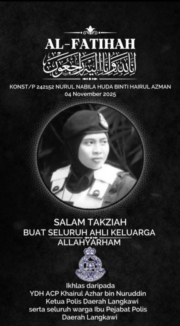 浮罗交怡县警局昨日在面子书贴文,向家属致哀。